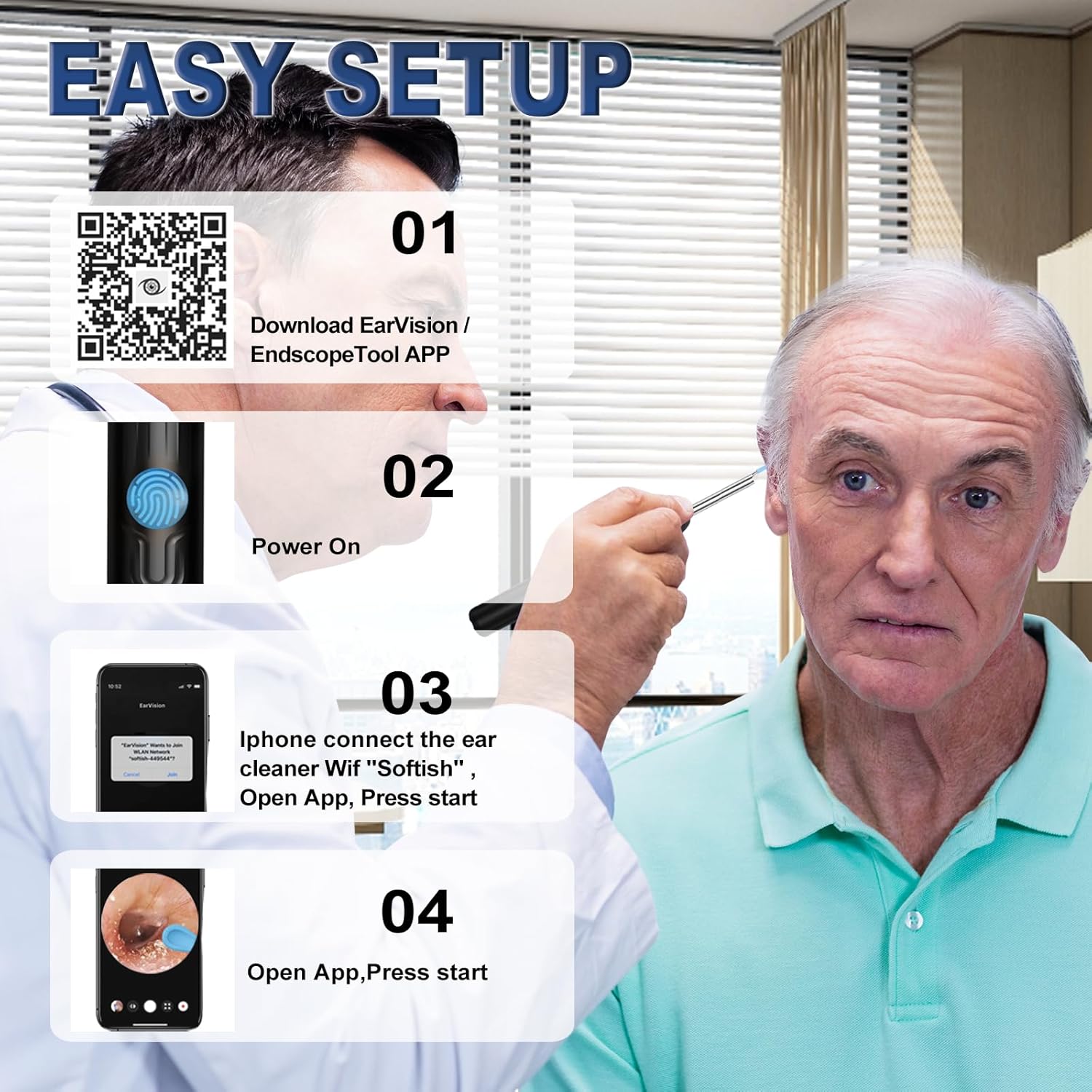 Wide Compatibility: This ear wax removal kit is compatible with Android and iOS systems, and you can easily use the ear wax removal with camera through the APP. Check the condition of the ear canal,nose and hair daily,keeping an eye on elderly people,kids and even pets